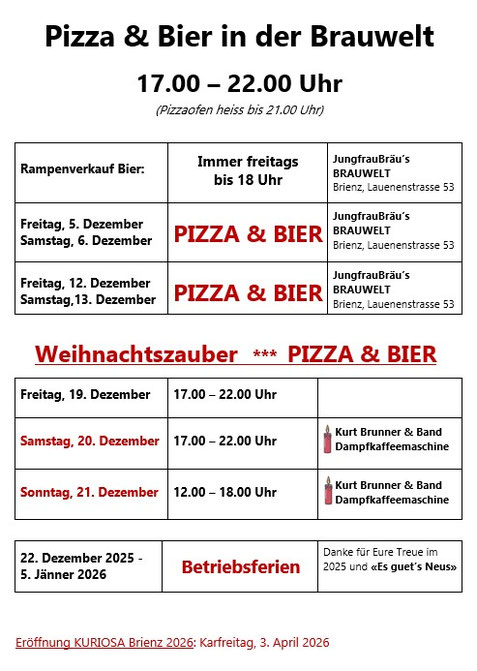 Jeden Freitag bis 18.00 Uhr in JungfrauBräu's Brauwelt an der Lauenenstrasse.