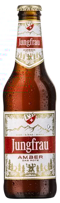 JUNGFRAU AMBER erhält dadurch die ganz typische rötliche Farbe mit cèmefarbenem Schaum - und erstrahlt im Glas, wie ein Sonnenuntergang im Berner Oberland.