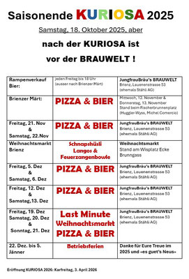 Mai - Oktober: Dienstag - Samstag ab 15.00 Uhr