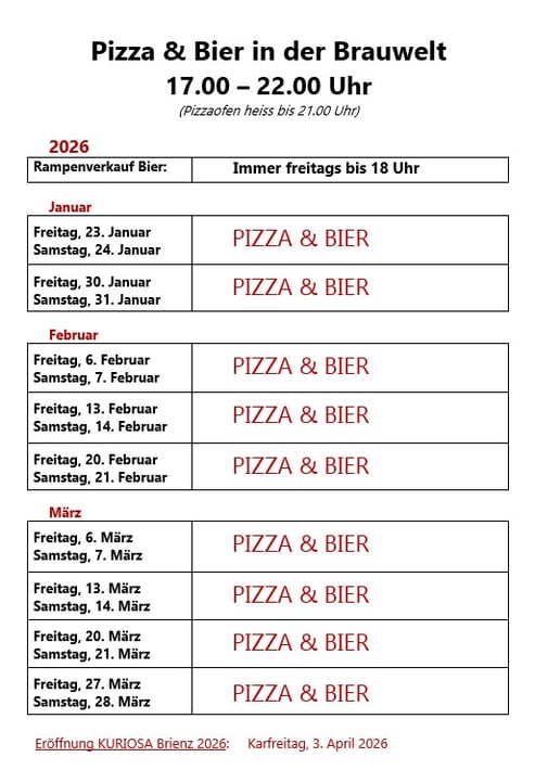 Wir führen Pizza&Bier in unserer Brauerei an der Lauenenstrasse 53 in Brienz durch: das erste Mal am Freitag, 23. Januar 2026.